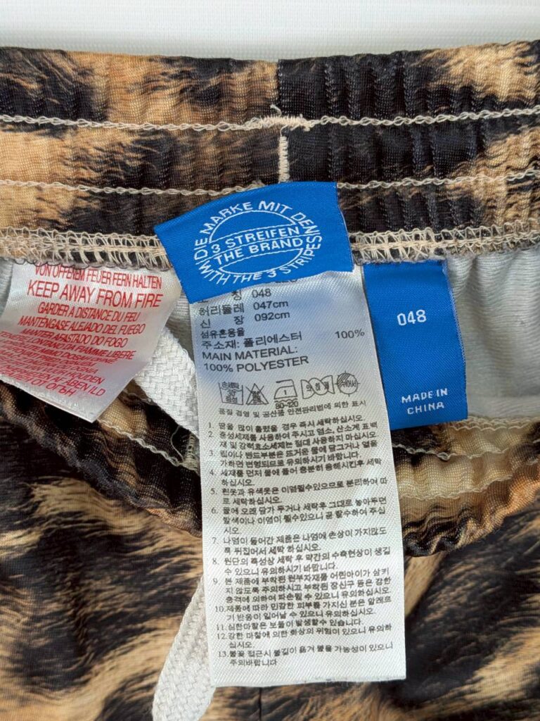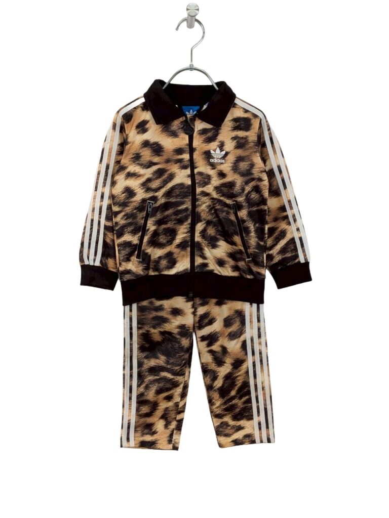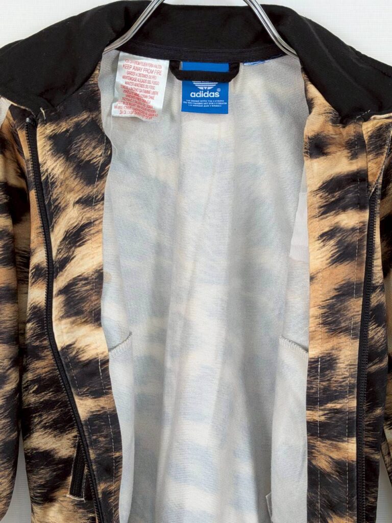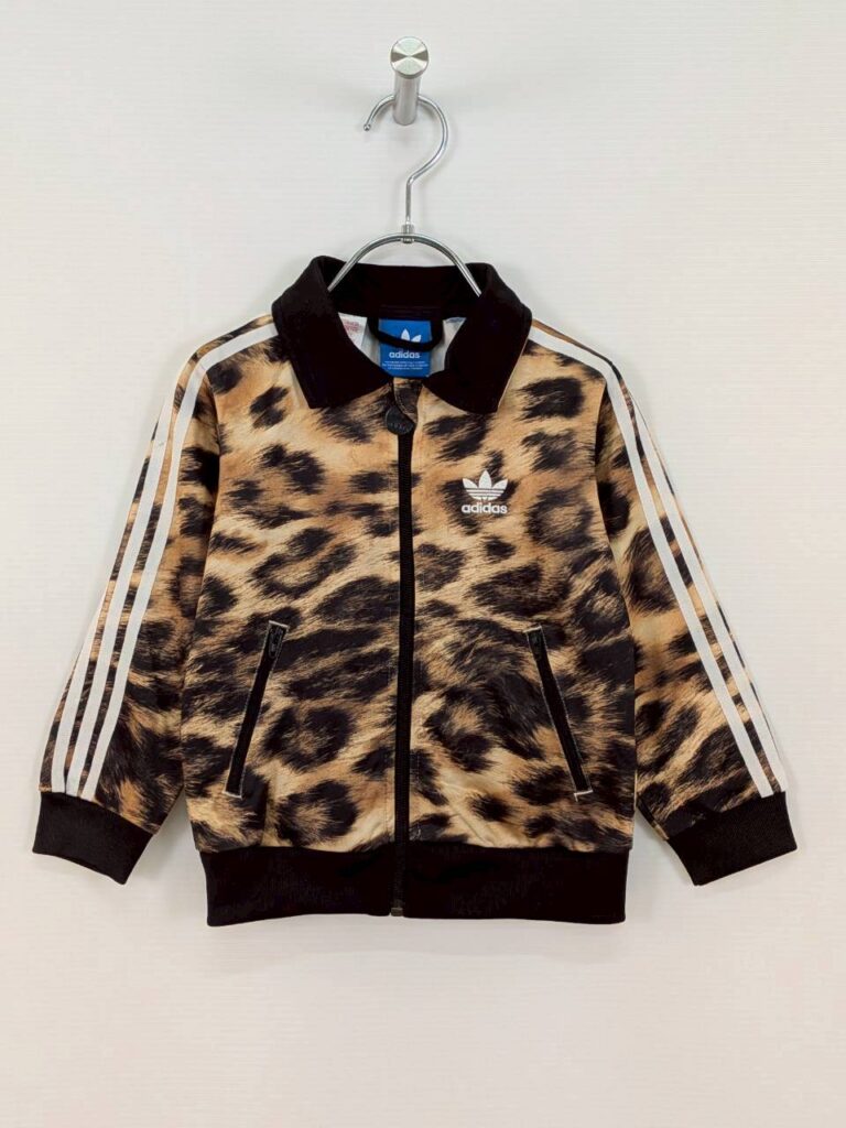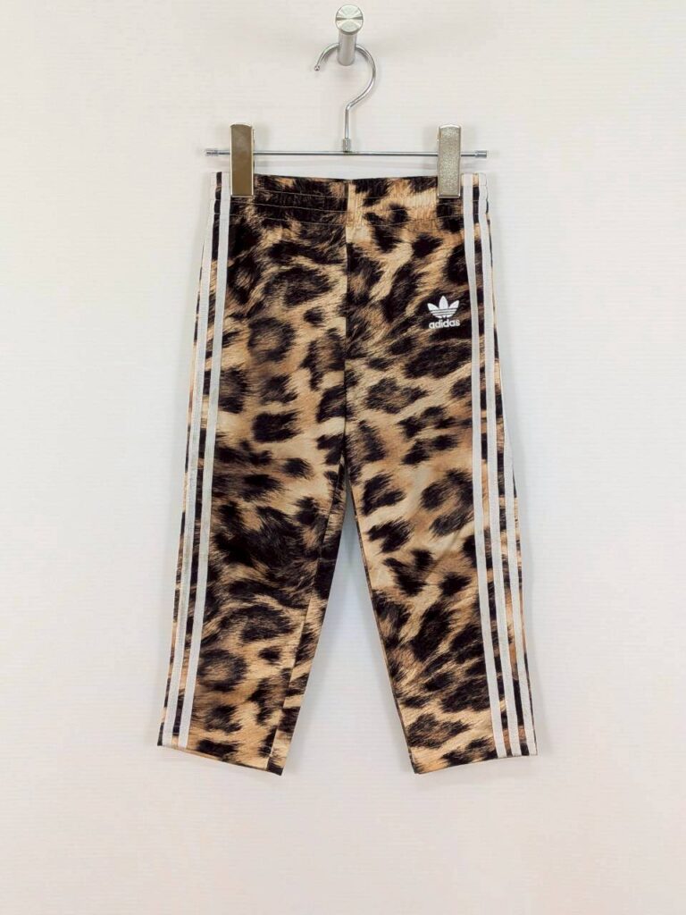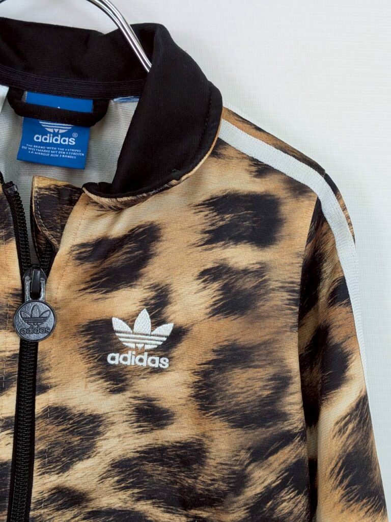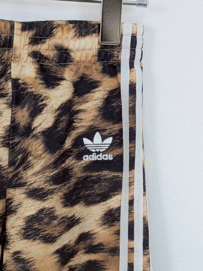 特徴 レオパード柄デザイン、サイドに3ストライプ、胸元にトレフォイルロゴ刺繍、