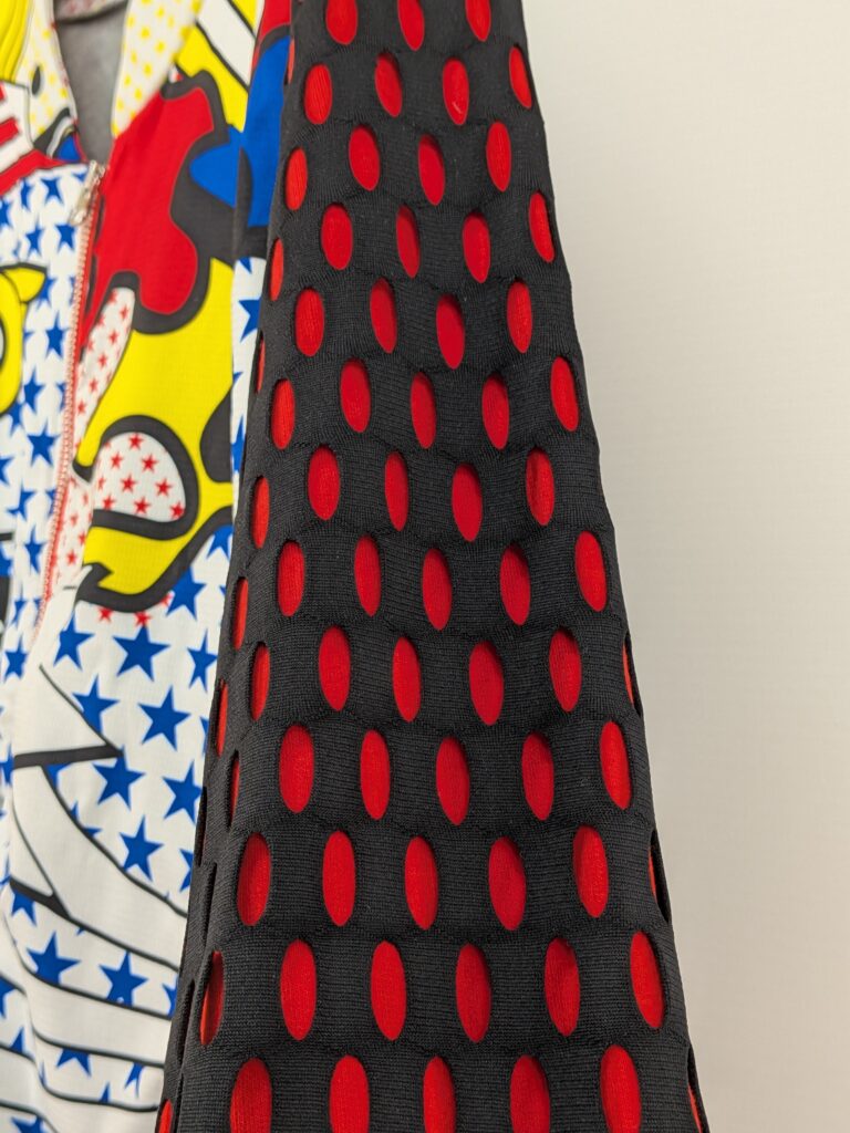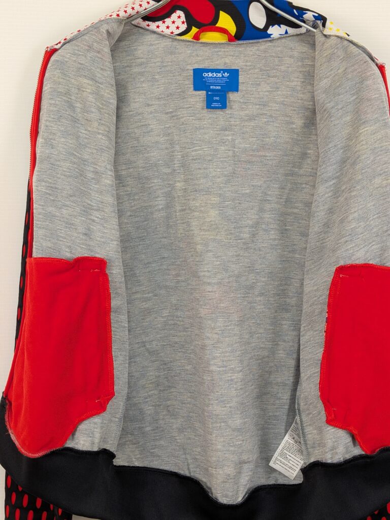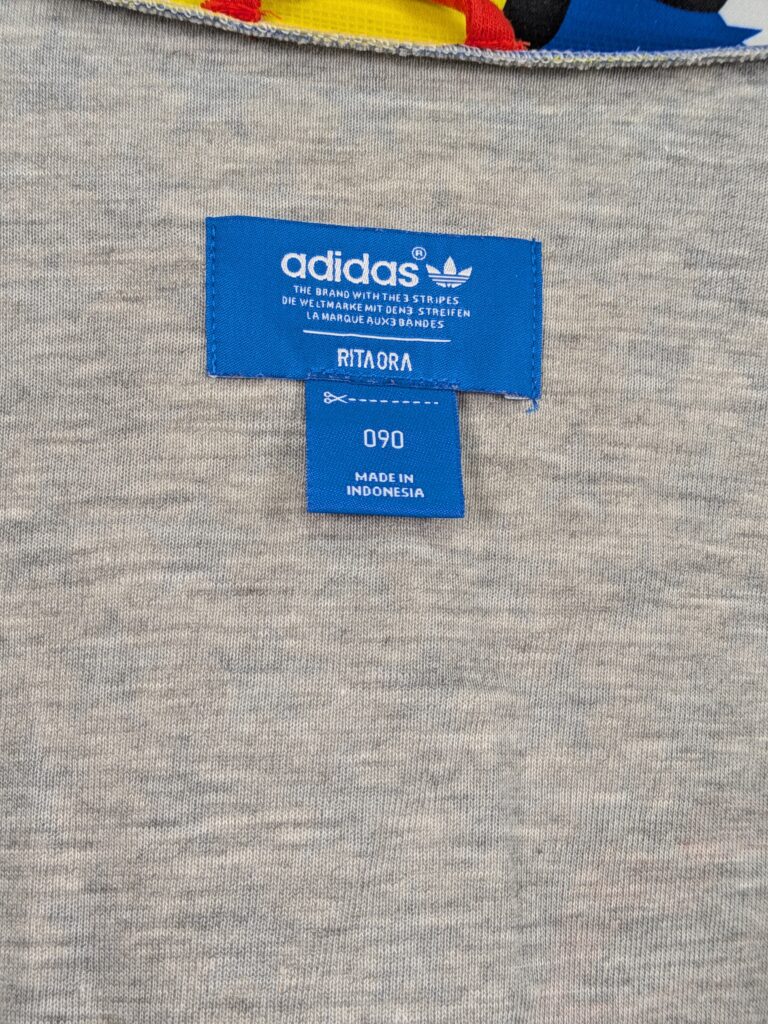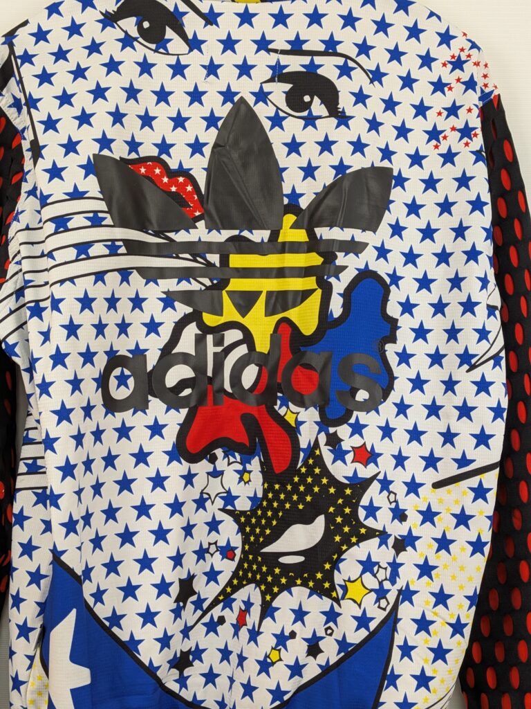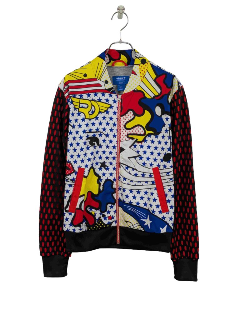 | 特徴 | Rita Ora(リタ・オラ)コラボレーションモデル、全体にポップアート調の総柄プリント、背面に大きなadidasトレフォイルロゴ × グラフィックアート、袖は黒ベースに赤の楕円ドットデザイン |