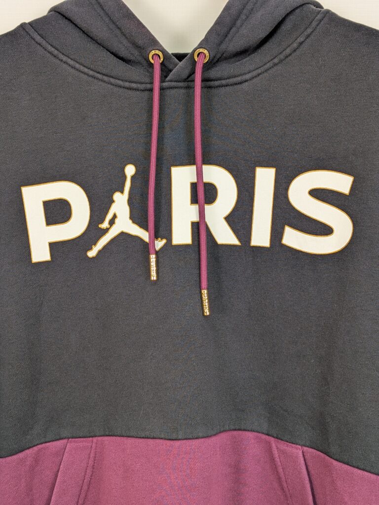 特徴 JORDAN X PSG(パリ・サンジェルマン)コラボ、裾にJORDAN X PSGのダブルロゴパッチ、裏起毛(保温性あり)、袖にPSGワッペン、カンガルーポケット付き