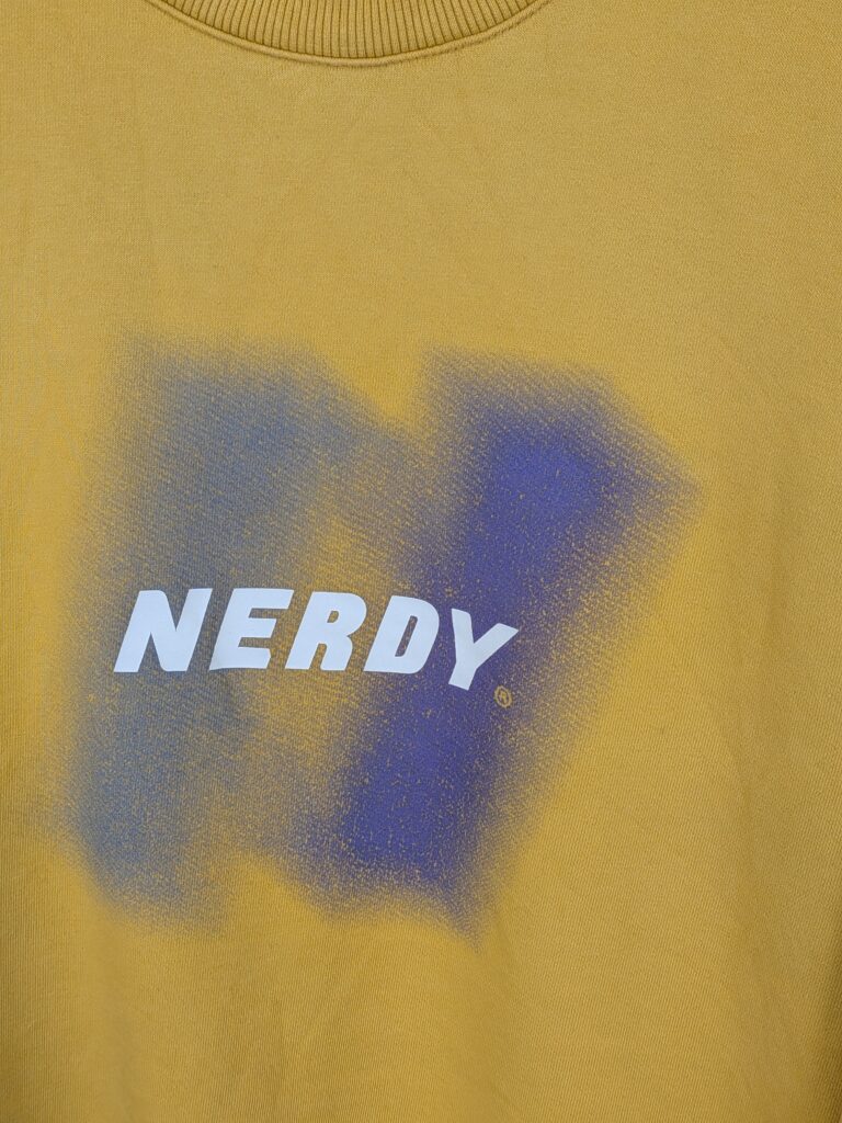 特徴 NERDY グラフィティ風ロゴ、袖口のリブ部分に小さな「NERDY」ブランドタグ付き、男女兼用で着用可