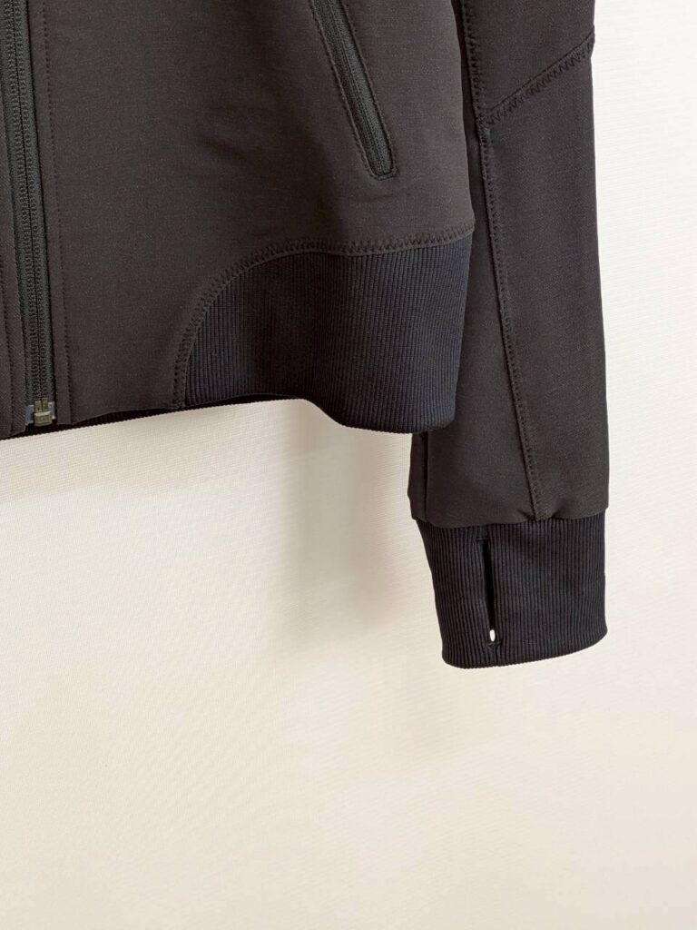 特徴 袖口にサムホール(親指通し穴)あり、左胸と背面右肩に同色系ロゴプリント、前面ジッパー + 両サイドジップポケット、襟・袖口・裾はリブ仕様