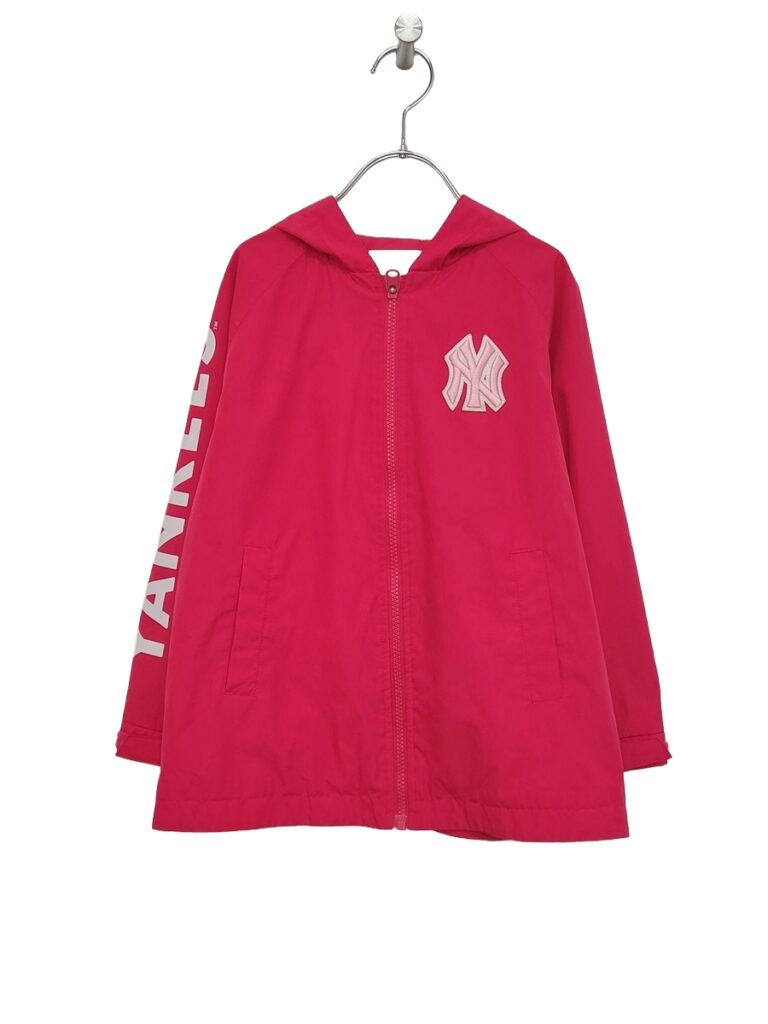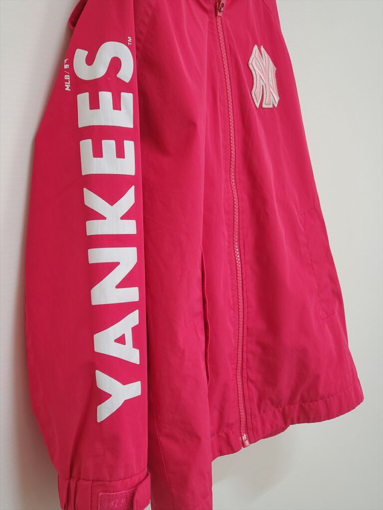 特徴 フロント左胸にNYヤンキースロゴワッペン、袖に大きく「YANKEES」のプリントロゴ、軽量ナイロン素材、フード付き、両サイドポケット