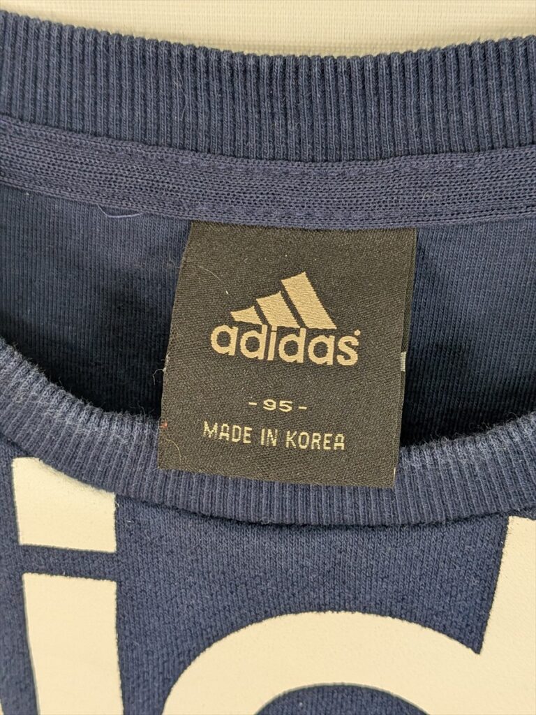 特徴 フロントにビッグロゴ「adidas」プリント、左袖にadidasロゴ刺繍入り、裏起毛仕様