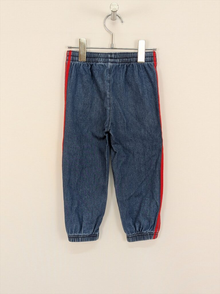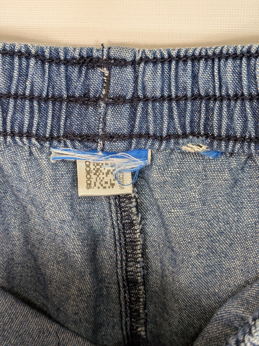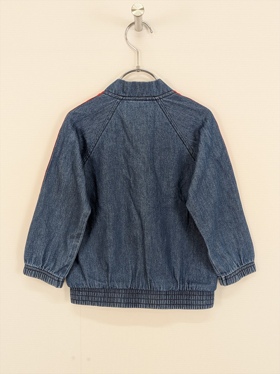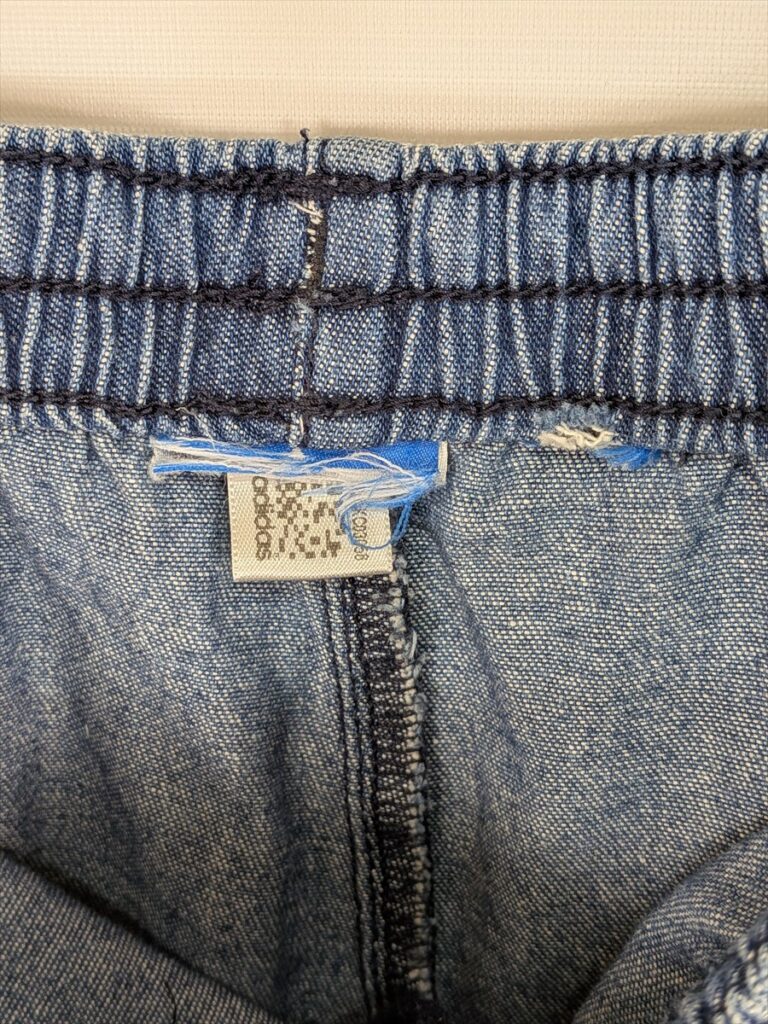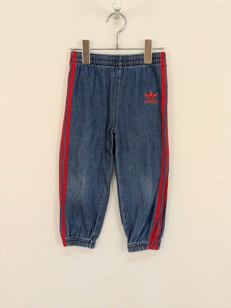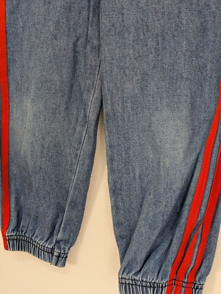 特徴 ジャージ素材ではなく「デニム調コットン」で作られた珍しいセットアップ、ジャケット胸元&パンツにトレフォイルロゴ刺繍(赤)、セットアップ仕様
