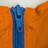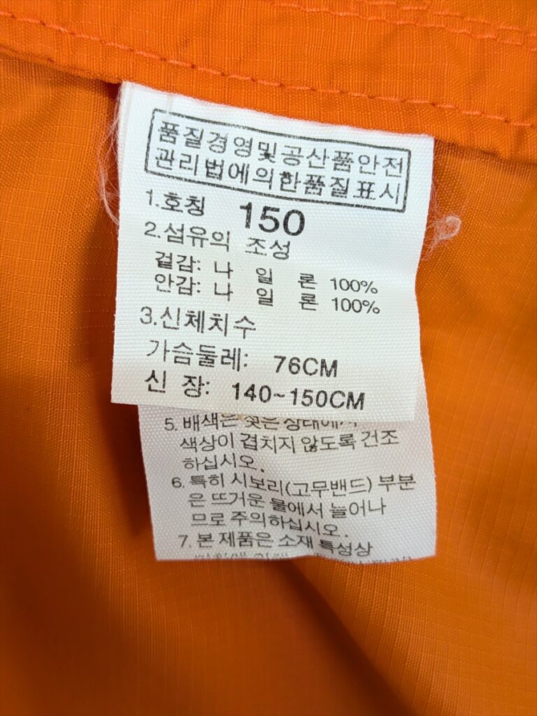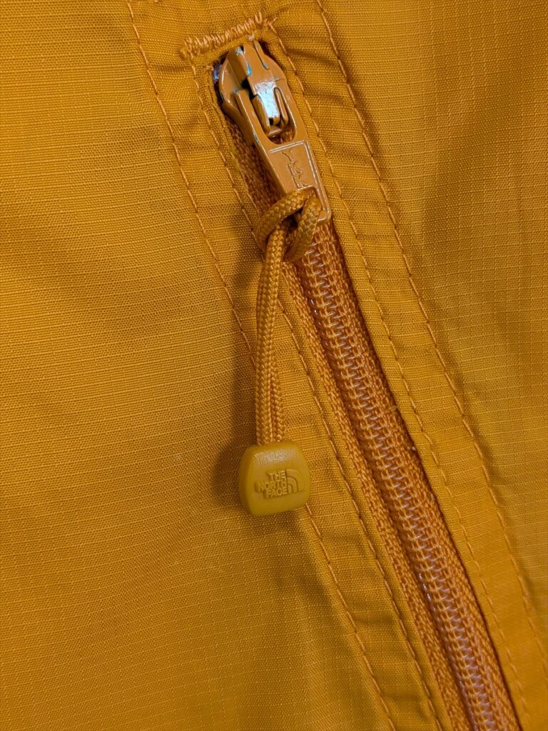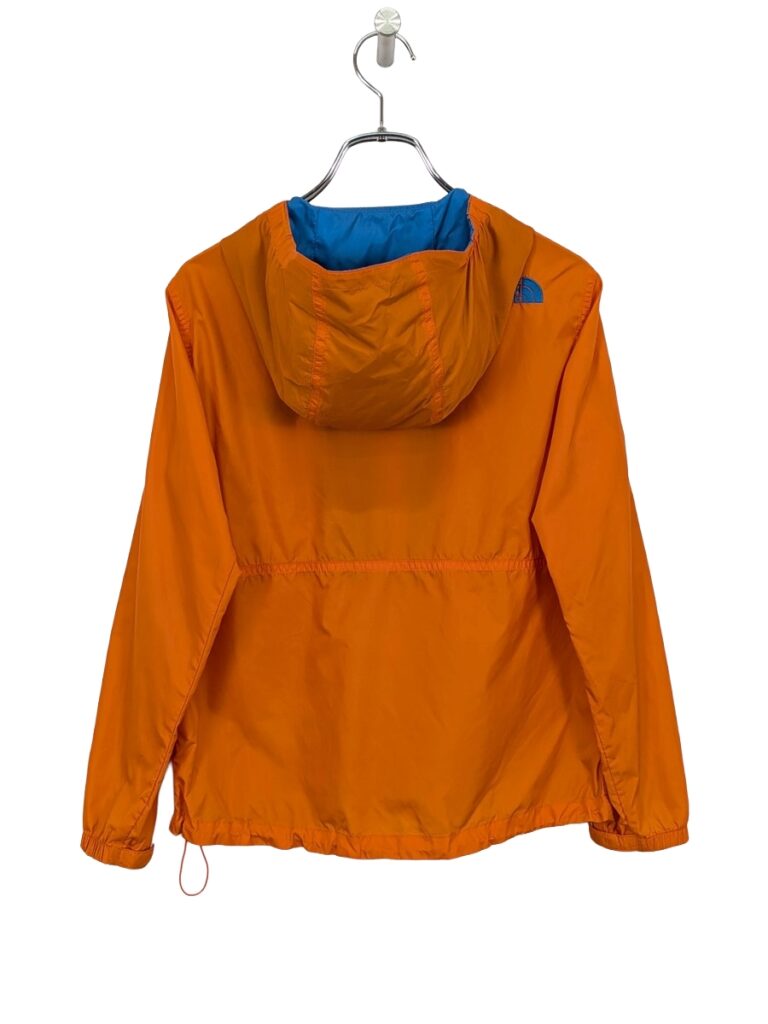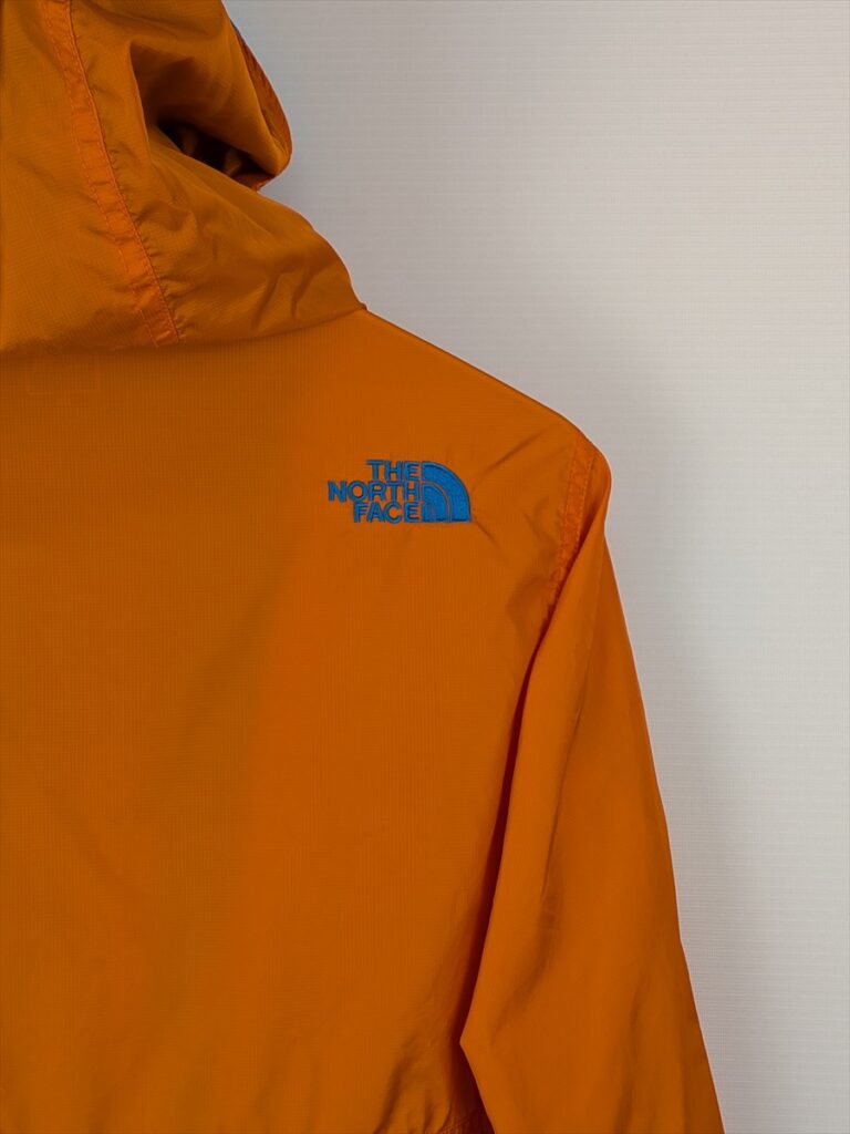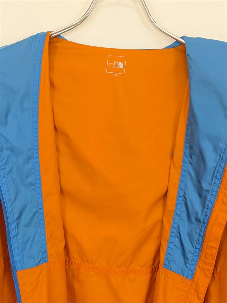 特徴 鮮やかなオレンジを基調に、ブルーのジップ・裏地・ロゴ刺繍を配色、軽量ナイロン素材で、春〜秋のアウターに適したウィンドブレーカータイプ、フード付き(取り外し不可