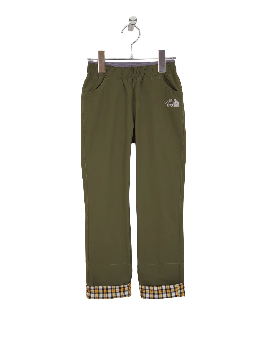 特徴 左ポケット部分にノースフェイス刺繍ロゴ、ウエスト総ゴム仕様、裾を折り返すとチェック柄が見えるデザイン、前後ポケットあり