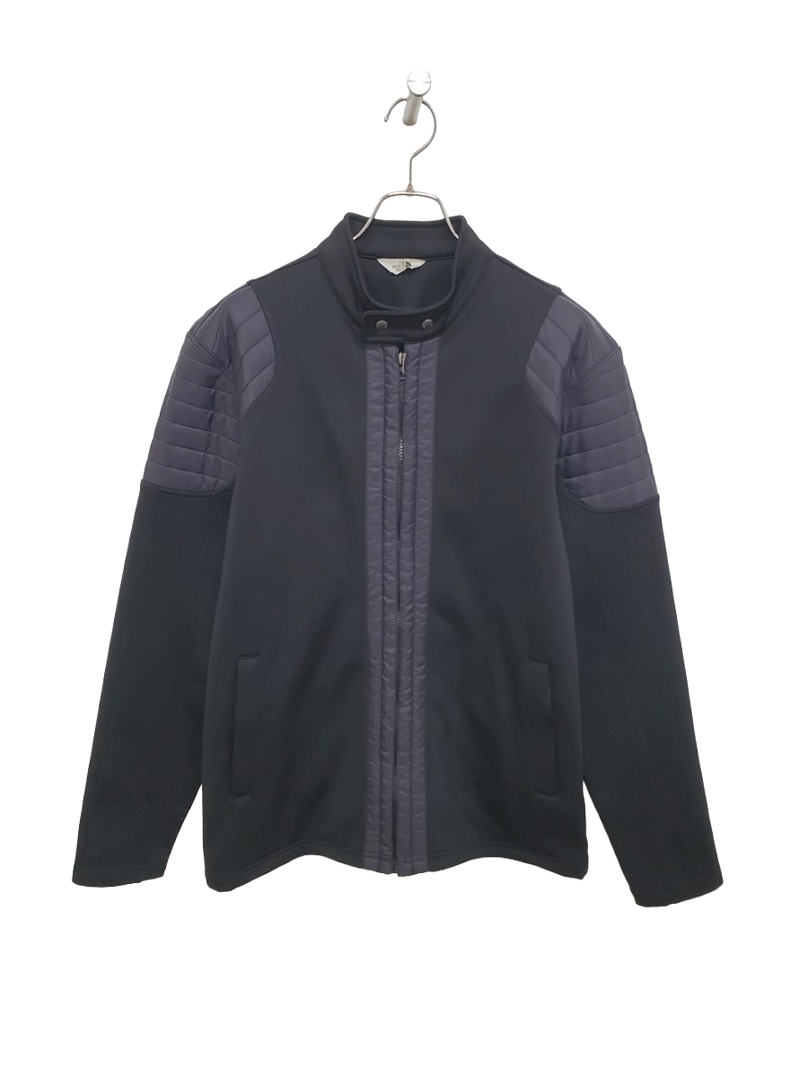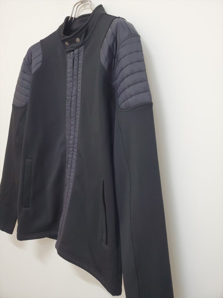 特徴 ショルダー部分にキルティング切替、フロントに中綿入りのラインデザイン、、バック左下に刺繍ロゴ入り、「ライダース風」デザイン