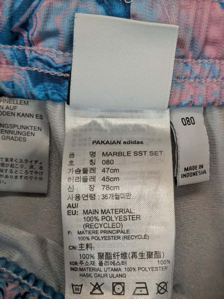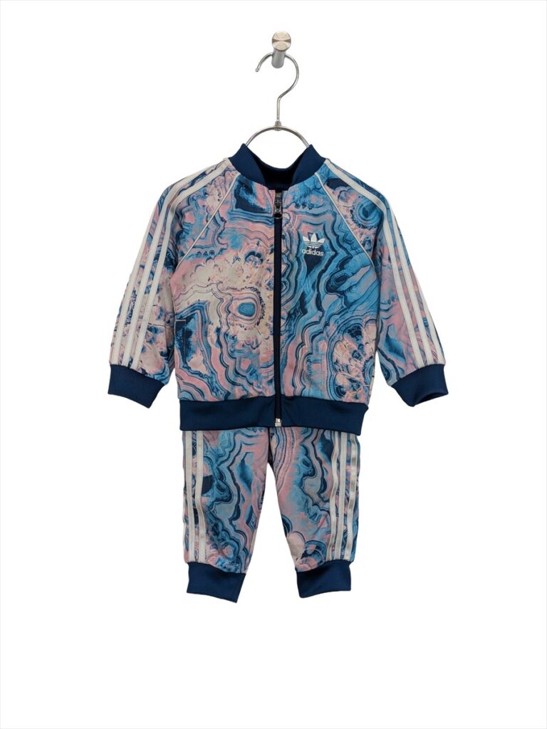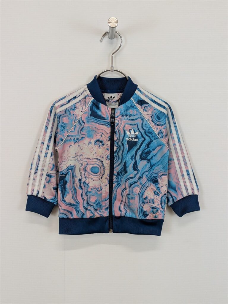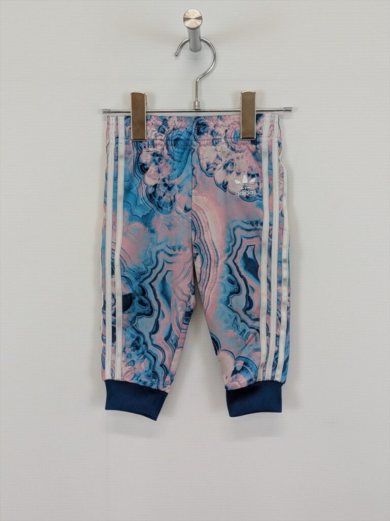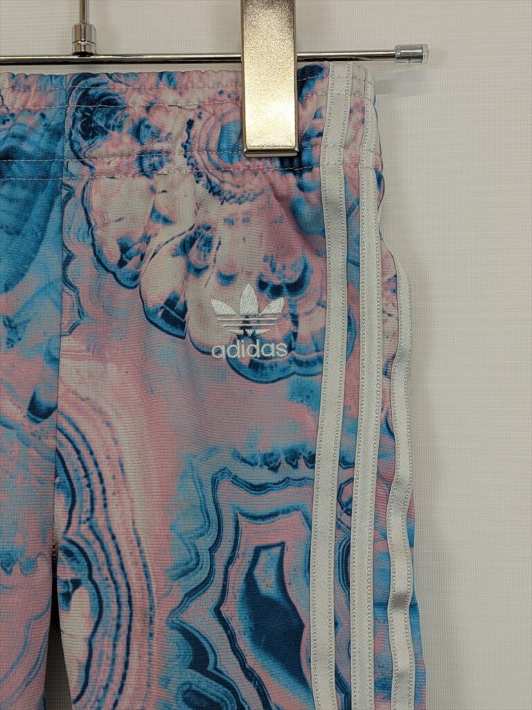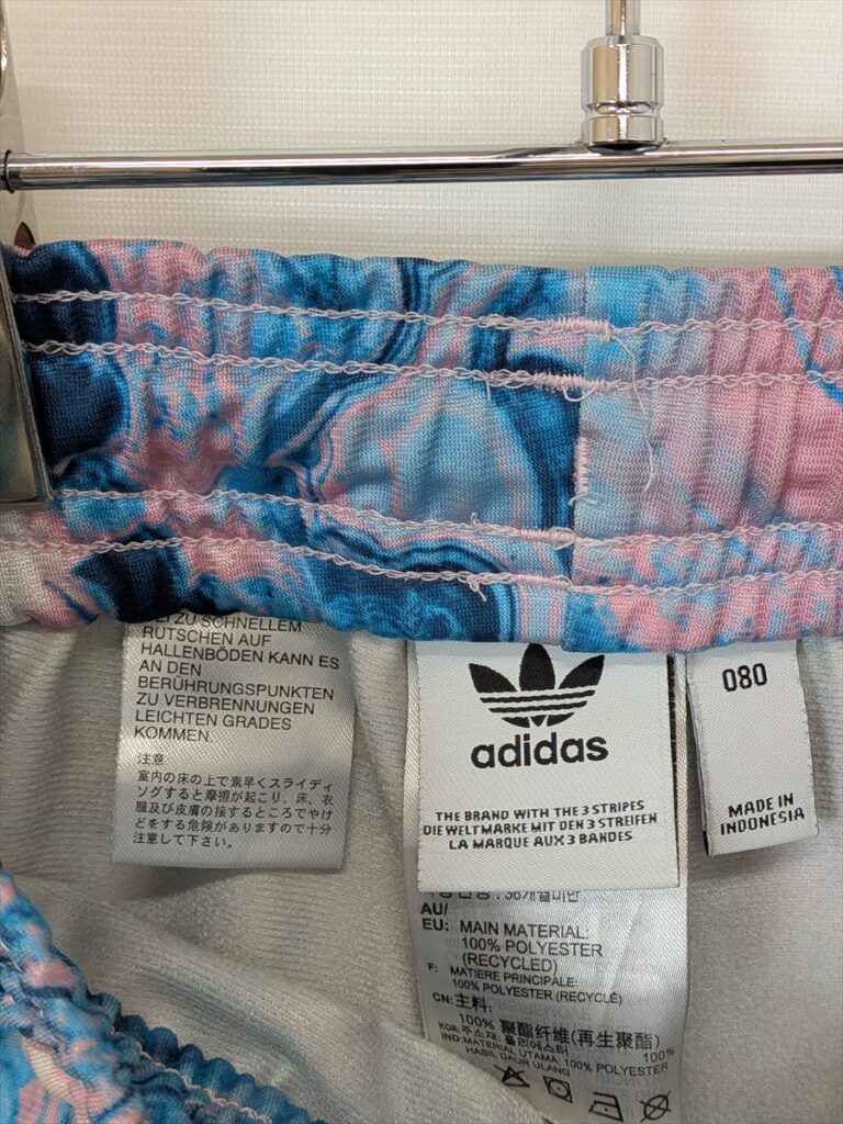 特徴 ピンク×ブルーのマーブルプリントが可愛い、リサイクルポリエステル素材でサステナブル、トレフォイルロゴ入りでadidasらしいデザイン、上下セットアップでコーデが即完成、軽くて動きやすく、お出かけにもぴったり