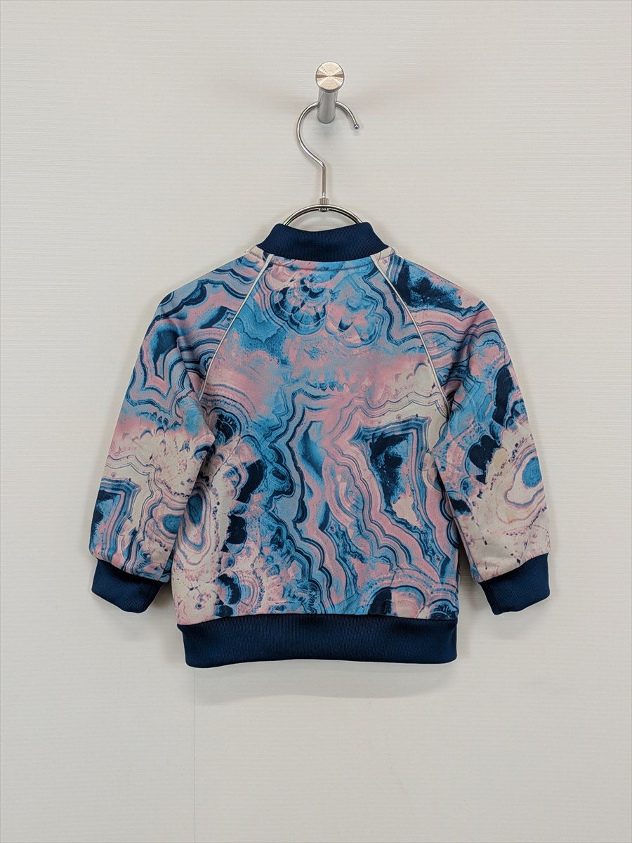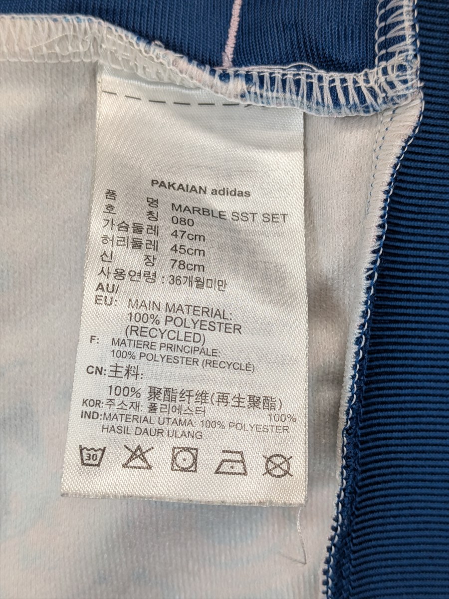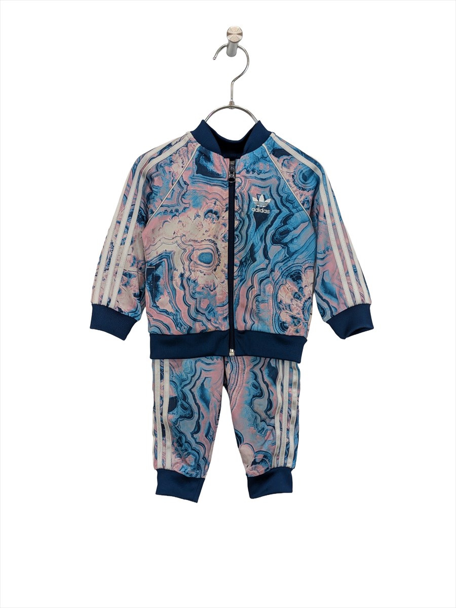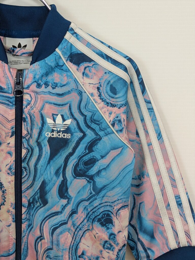 特徴 ピンク×ブルーのマーブルプリントが可愛い、リサイクルポリエステル素材でサステナブル、トレフォイルロゴ入りでadidasらしいデザイン、上下セットアップでコーデが即完成、軽くて動きやすく、お出かけにもぴったり