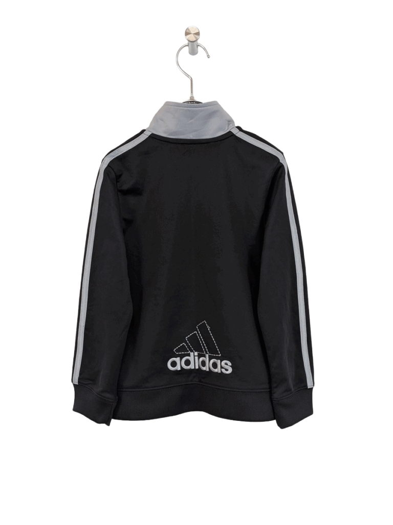 | 特徴 | シックなブラック×グレーのツートンカラーでスタイリッシュ、胸元&背面のadidasロゴ刺繍入りで存在感◎、裏起毛素材で保温性があり、秋冬のアウターにも最適、軽量&ストレッチ性のあるポリエステル素材で動きやすい、男女問わず使えるユニセックスデザイン、通園・通学・お出かけ・スポーツなど幅広く活躍 |